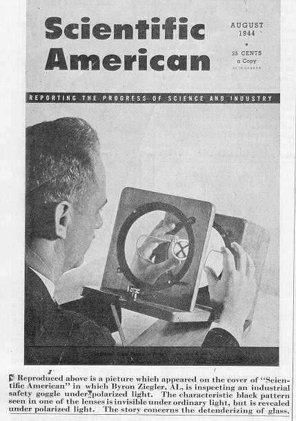 AO's Byron Zeigler, who later started Omintech which became Gentex is shown in a 1944 Cover feature on Scientific American