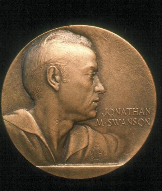 This interpretation of vision was conceived and executed by Jonathan M. Swanson, a sculptor of New York City. He was born in Chicago and attended public grammar and High Schools there. He studied at the Chicago Art Institute and always expressed his gratitude for that privilege, especially the instruction received under John Vanderpoel and Thomas Wood Stevens. Mr. Swanson worked in many mediums and was an untiring student of character and expression. His interest in sculptured relief for medals was aroused while observing the operation of the reducing machine cutting steel dies from sculptors' models.