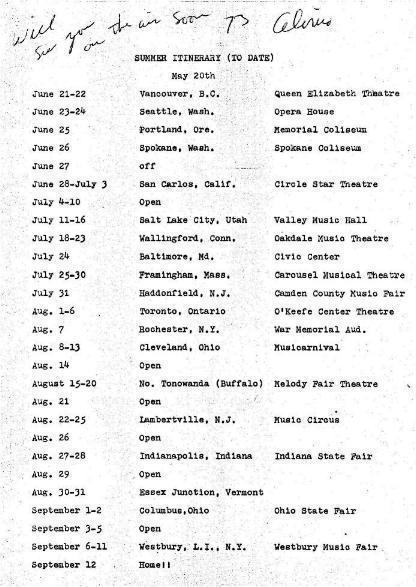 Shown below is a itinerary of the King Family 1966 Tour schedule that Alvino sent Dad. I went to the Wallingford Ct and Framinham concerts!