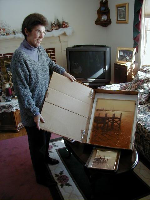 Check out Barbara Groff's incredible artwork on her web site. She is a family friend, and has created pastels for us. One is an outstanding rendition of a photo I took of the Edgartown harbor in 1974 (below right). Shown on left is a photo of Barbara with her rendition of Edgartown Harbor.