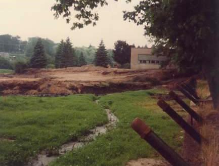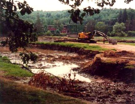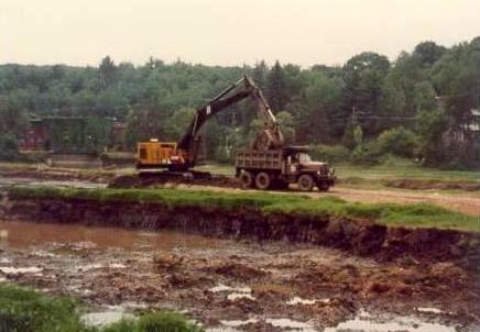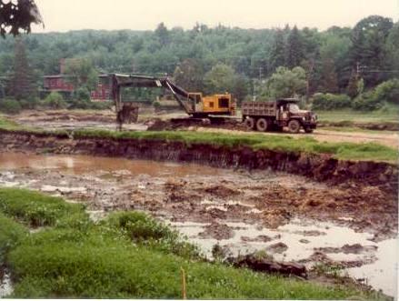 In July of 1978, the River was dammed such that the AO Pond dried up. So much sediment had settled downstream in this pond, that truckload after truckload of dirt was hauled from the pond and trucked over to the old tennis court area (now on Schott Fiber Optics Property). Here are some of the photos I took at the time.