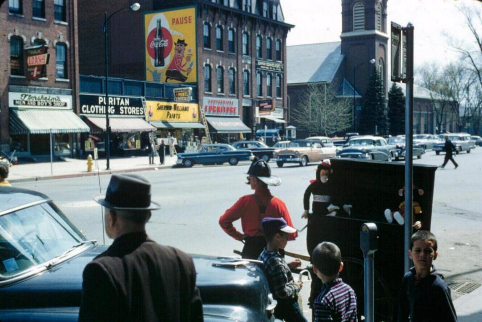 Looking at the Ammidown building (with Coke sign on it), the present