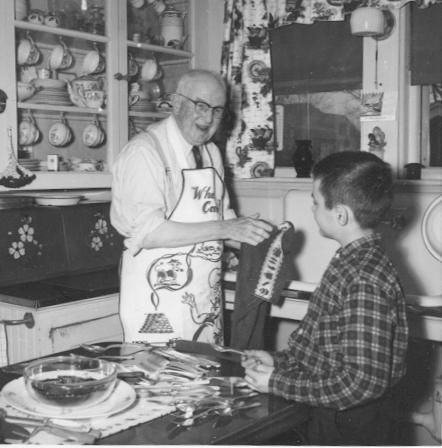 With Bumpy at 47 Wyoming Rd - At work in the Kitchen with his famous apron