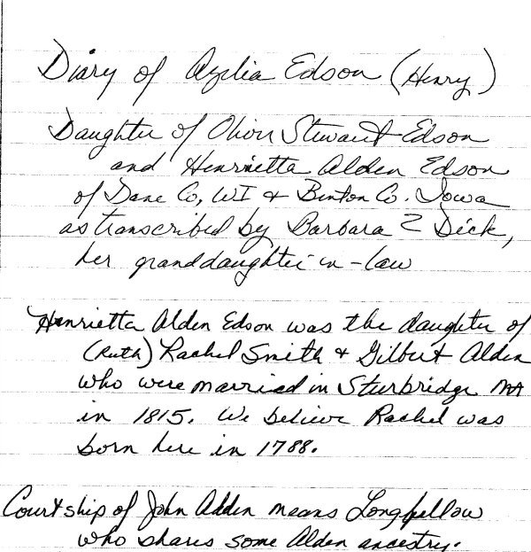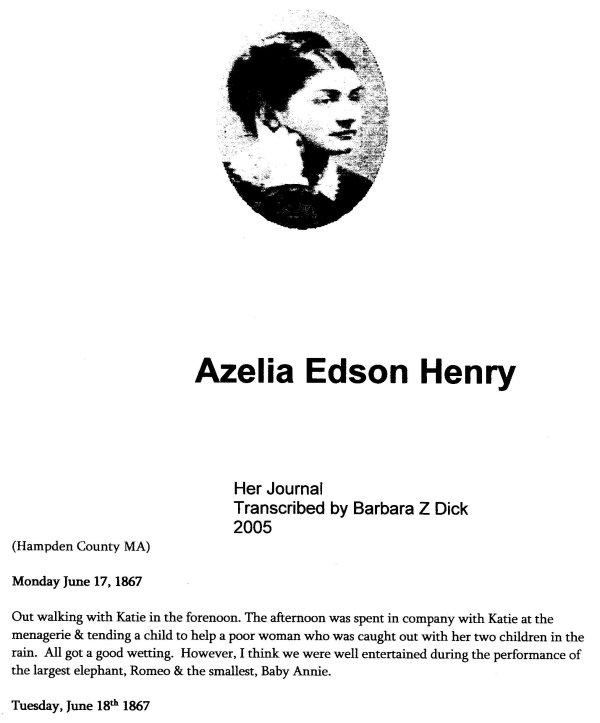 A diary entry of Azelia Edson - Aug 9th, 1867!