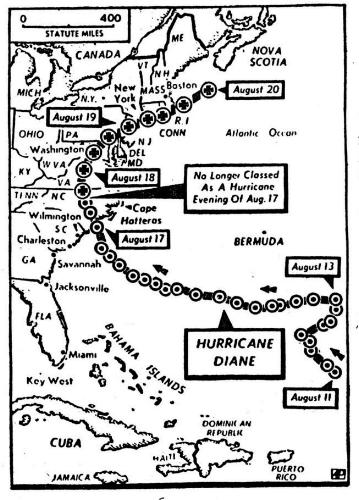 Hurrican Dianes path in August, 1955